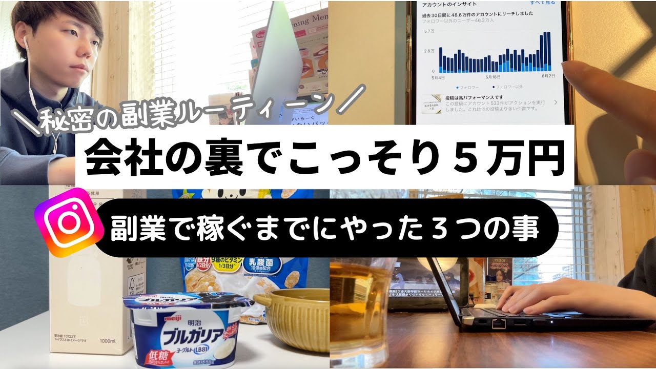 【会社の裏でこっそり稼ぐ】僕が副業で月5万稼ぐまでにやった3つのこと【インスタ✖️アフィリエイト】